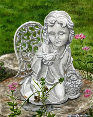 Like with the Garden Angel, after laying in all the basic colors, I continued to add more and more layers of paint, darkening the values and adding fine details. This is the finished painting.